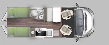 Ideal für Paare: * 3 Schlafplätze, 4 Fahrplätze * 2 Einzelbetten, hinten längs 197/200x80cm * Bettumbau Einzel- zu Doppelbett * Hubbett, mitte quer 190x81cm